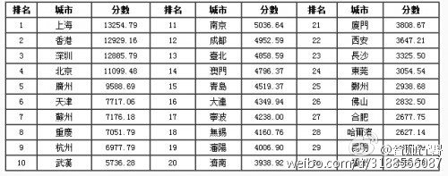 除了城市綜合競(jìng)爭(zhēng)力排行榜之外,還有一系列其他榜單如下:
