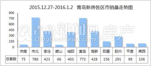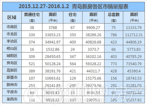 上周正值跨年之際,青島新房市場(chǎng)也延續(xù)了2015年末的超高成交量,成績(jī)喜人。根據(jù)青島新聞網(wǎng)數(shù)據(jù)統(tǒng)計(jì),從12月27日-1月2日,青島市新房成交3605套,總成交面積405388.56㎡;其中新建住宅成交2767套,成交面積296604.89㎡。值得注意的是,除了1月1日、1月2日“零成交”之外,1月3日也交了“白卷”,因此“跨年周”成交量看起來(lái)與前一周相比有些許“滑落”。
