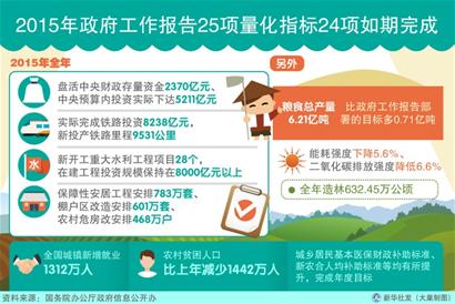 記者29日從國務(wù)院辦公廳政府信息公開辦了解到,圍繞2015年政府工作報告確定的經(jīng)濟社會發(fā)展主要目標(biāo)任務(wù),中央政府各部門強化責(zé)任、狠抓落實,25項量化指標(biāo)任務(wù)中24項如期完成,僅進(jìn)出口增長未能達(dá)到全年預(yù)期目標(biāo)。
