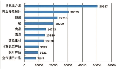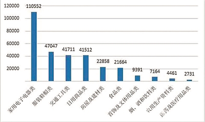 在具體商品投訴中,投訴量居前十位的分別為:通訊類產(chǎn)品、汽車及零部件、服裝、鞋、食品等。汽車及零部件品類的投訴從2014年的第三位升至2015年的第二位,家具類投訴與2014年相比,上升了一位。