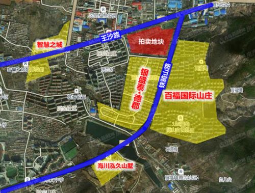 從位置推斷,該宗地塊位于銀盛泰德郡北側(cè),與百福國際山莊一路之隔。從衛(wèi)星地圖可以看到,該宗地已基本完成騰空,為后續(xù)開發(fā)做好了準(zhǔn)備。