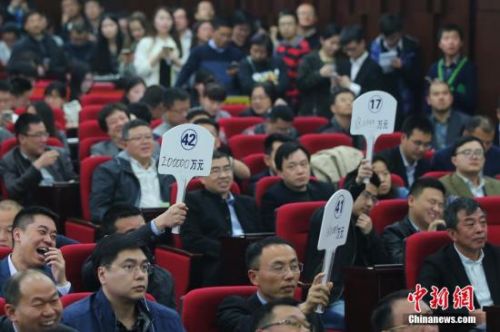 資料圖:南京土地拍賣會現(xiàn)場,房企競相舉牌。 中新社記者 泱波 攝