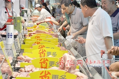據(jù)青島商務(wù)部門監(jiān)測顯示,上周市區(qū)豬肉上市量為1.35萬頭,日均1932.5頭,較前一周下降3%;批發(fā)均價(jià)為28.04元/公斤,較前一周上漲1.8%,零售均價(jià)攀升至32.34元/公斤。