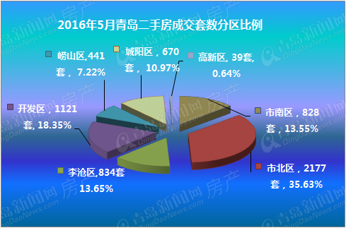 市南區(qū)5月成交二手房828套,較之前兩個(gè)月有所下降,占比全市總交易量13.55%;嶗山區(qū)上月二手房二手房成交441套,占比全市總量7.22%;城陽(yáng)區(qū)成交二手房670套,占比全市總交易量10.97%;高新區(qū)上個(gè)月共賣出二手房39套,占比全市總交易量0.64%。