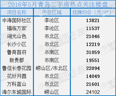 5月青島二手房熱點(diǎn)關(guān)注樓盤(pán)