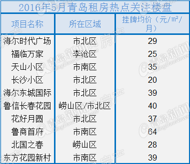5月青島租房熱點(diǎn)關(guān)注樓盤(pán)