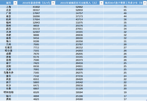 從山東省來看,青島的買房壓力比較靠前。縱觀全國來看,青島作為副省級(jí)城市與全國其他同類城市相比,排名又如何呢?接下來,讓我們?cè)賹?duì)比一系列數(shù)據(jù),其中2015年城鎮(zhèn)居民可支配收入為山東省各城市平均值,為31545元,由此計(jì)算,90㎡戶型需要不吃不喝25年才能買上。