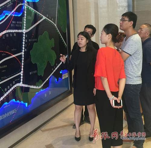 在嶗山區(qū)一樓盤,記者看到了同樣的狀況,9月16日,早上八點(diǎn)半,位于濱海大道上的售樓處就不斷有人到訪,容納四五十輛車的停車場(chǎng)不到十點(diǎn)就被占據(jù)了一半的位置。三四十人讓不大的售樓處顯得有些擁擠,所有置業(yè)顧問全員出動(dòng),忙個(gè)不停。置業(yè)顧問小韓剛剛到項(xiàng)目不久,平日里接待量不大。因?yàn)榭腿思械皆L,他替旁邊的“老同事”做起了中轉(zhuǎn)站,兩個(gè)小時(shí)就接待了三組客人,“最近一兩個(gè)月,我們最高一天接待了七十多組客人,今天看這個(gè)架勢(shì)鐵定是超了!”