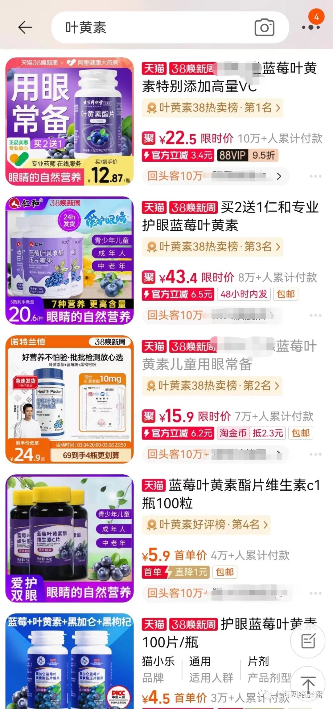 網(wǎng)購平臺上,月銷量上萬的葉黃素類保健品比比皆是。