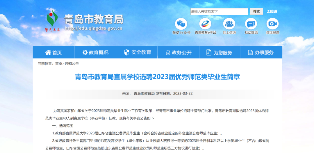 擬選聘2023屆優(yōu)秀師范類(lèi)畢業(yè)生40人