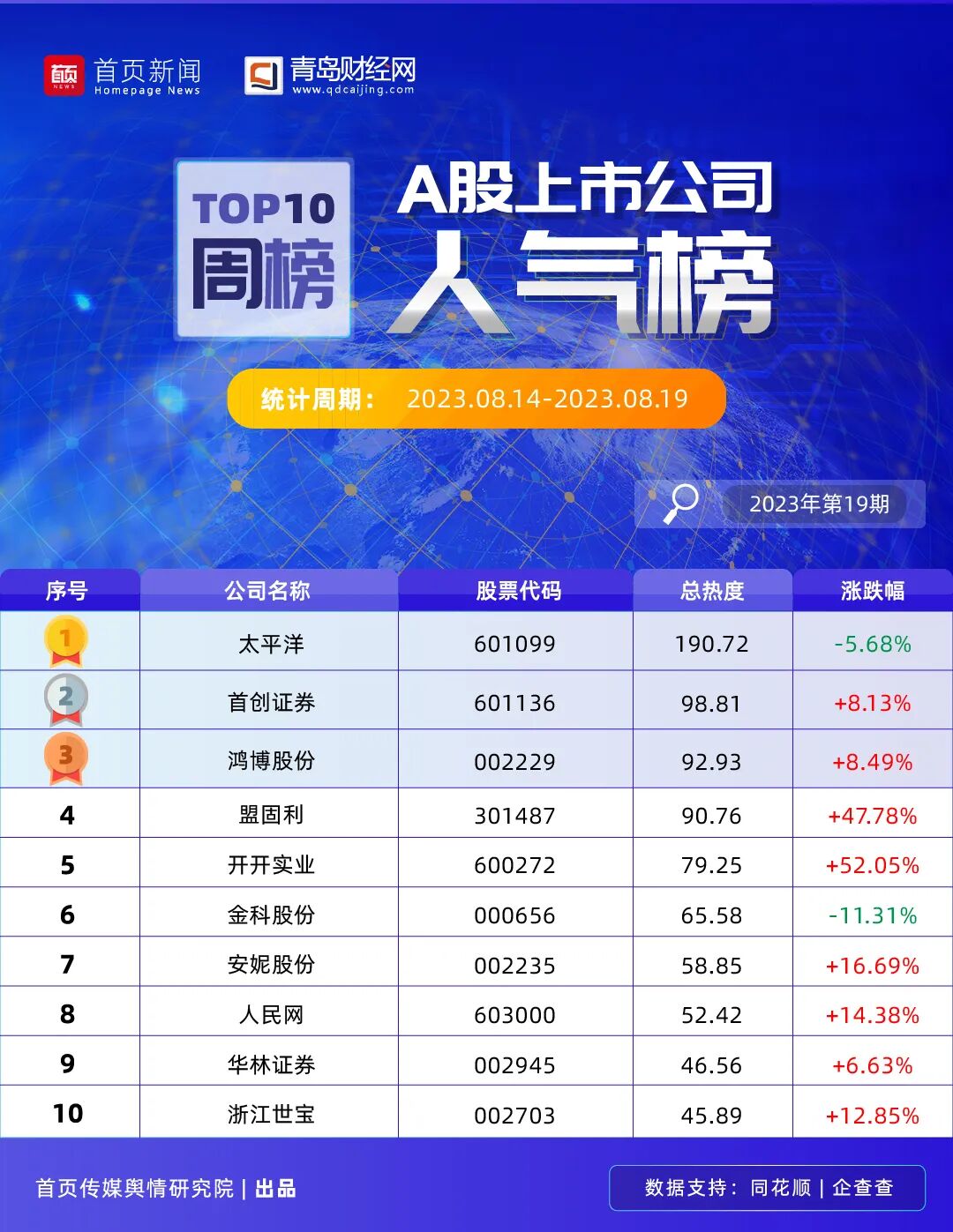 A股上市公司一周人氣榜|開開實業(yè)漲幅靠前