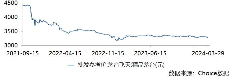 茅臺(tái)股價(jià)從2月開(kāi)始基本就沒(méi)漲,一直是橫向震蕩,不存在炒作透支。那問(wèn)題只能是后者了。這兩天市場(chǎng)有消息說(shuō),茅臺(tái)批發(fā)價(jià)連續(xù)下滑。狼叔查了下,截至4月7日,2023年茅臺(tái)散飛批價(jià)2595元,周環(huán)比下跌35元,月環(huán)比下跌115元;龍茅批價(jià)為3070元,周環(huán)比下跌30元。