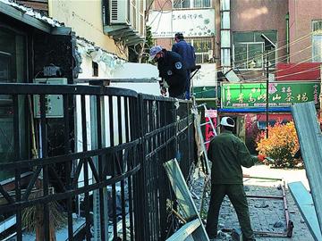 湛山管區(qū)江西路沿線樓院大多都是建于上世紀(jì)80年代的老樓院,這些樓院北處靠街,南側(cè)則普遍建設(shè)有一處小型的 “院中院”。 “由于規(guī)劃設(shè)計原因,這些小院只能由一樓住戶使用,部分住戶就在小院里搭建起了臨時板房,用于倉儲、居住甚至是廚房。 ”工作人員說。這些臨時搭建的板房不但嚴重影響了市容市貌和衛(wèi)生環(huán)境,而且普遍存在違規(guī)使用液化氣罐、私接亂拉電線的情況,還存在著嚴重的安全隱患,一旦發(fā)生意外,后果不堪設(shè)想。據(jù)悉,整個拆除工作預(yù)計在一周內(nèi)結(jié)束。 (記者 馬曉婷 通訊員 李晨)工人正在拆除違法建筑。