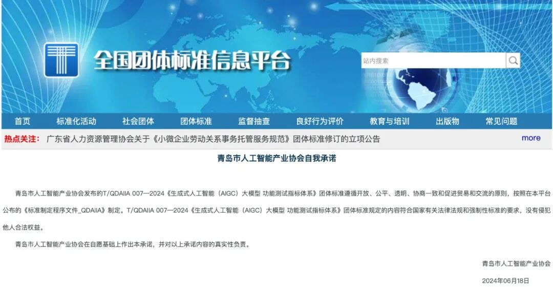 在人工智能產(chǎn)業(yè)蓬勃發(fā)展的浪潮中,標(biāo)準(zhǔn)化工作成了推動(dòng)行業(yè)高質(zhì)量發(fā)展的關(guān)鍵。近日,青島市人工智能產(chǎn)業(yè)協(xié)會(huì)與山東省人工智能協(xié)會(huì)攜手,共同發(fā)布了國內(nèi)首個(gè)針對(duì)生成式人工智能(AIGC)大模型測(cè)試的團(tuán)體標(biāo)準(zhǔn)——《生成式人工智能(AIGC)大模型 功能測(cè)試指標(biāo)體系》。這一里程碑式的標(biāo)準(zhǔn)發(fā)布,標(biāo)志著我國在AIGC領(lǐng)域標(biāo)準(zhǔn)化工作取得了重要突破,為人工智能產(chǎn)業(yè)的健康、快速發(fā)展注入了新的活力。