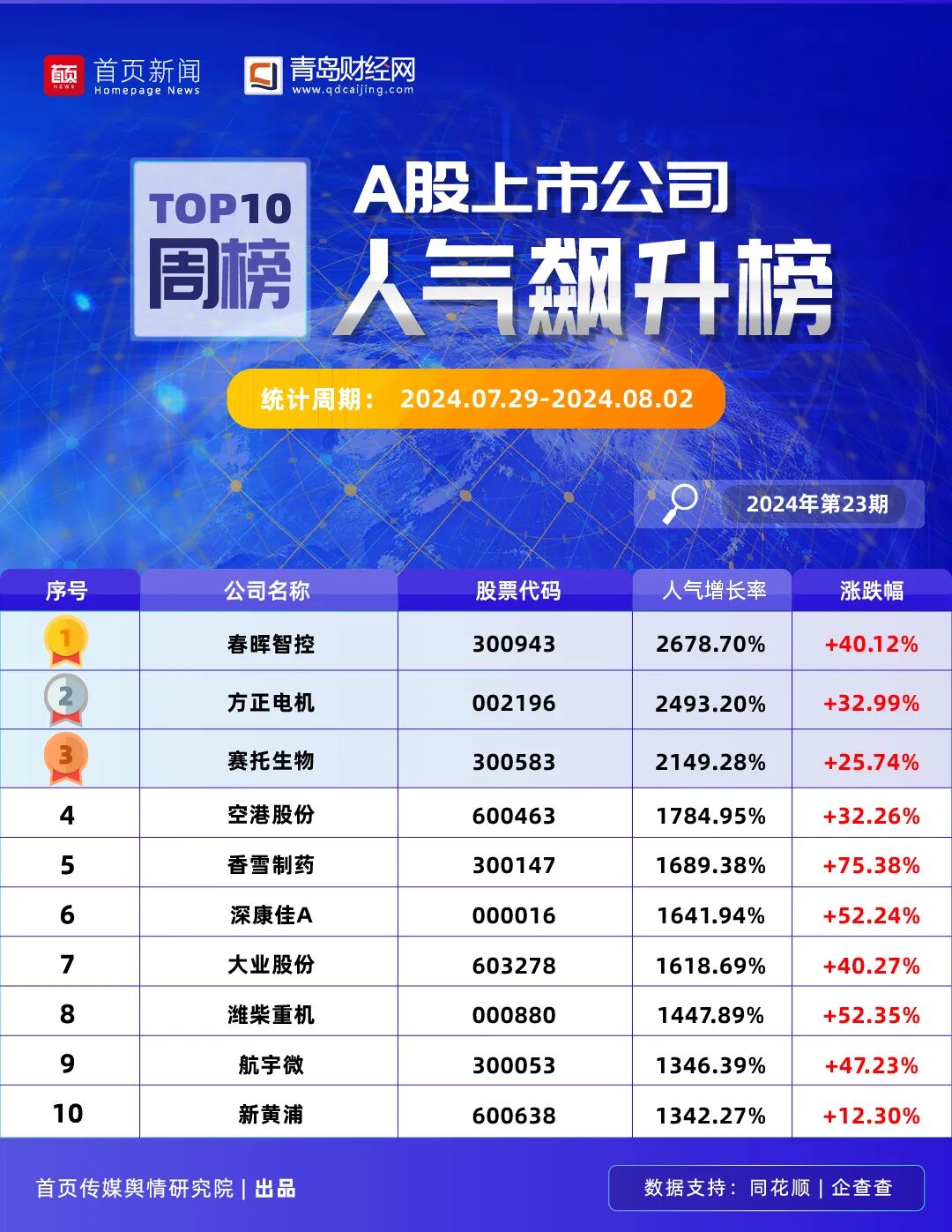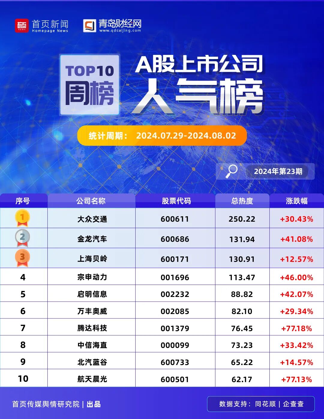 A股上市公司一周人氣榜|大眾交通高居榜首 春暉智控人氣飆升