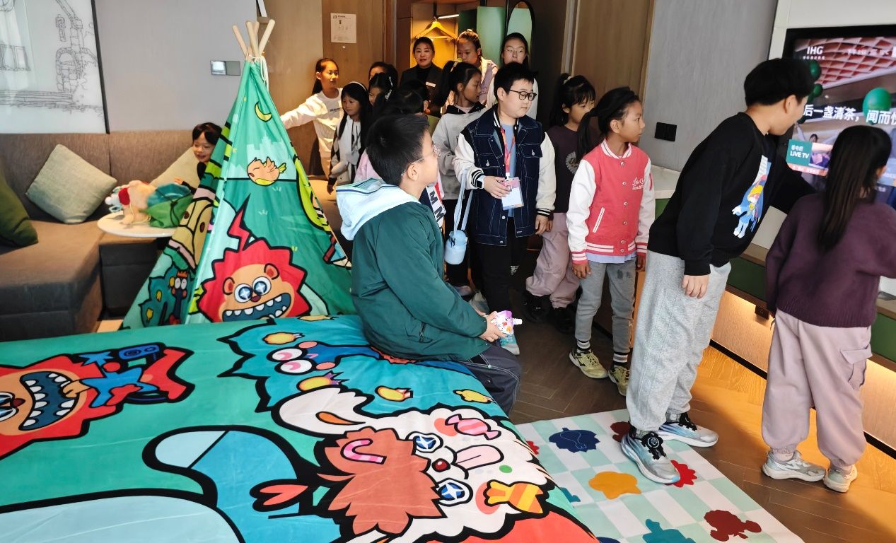 活動中,小記者們不僅重點(diǎn)探訪了青島金水套房假日酒店極具特色的“小神獸”兒童主題房,還走進(jìn)了金水皇冠假日酒店的“皇冠家族”主題房——皇豆豆、咘咘兔、貝崽崽三位家族成員的形象遍布房間角落??蓯鄣难b飾、充滿童趣的布置,讓小記者們仿佛置身于童話世界,大家紛紛感嘆,在這里入住一定能留下快樂無限的回憶。