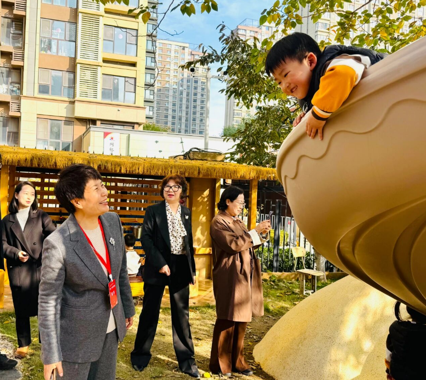 市北區(qū)高安路幼兒園紫臺園區(qū)內(nèi),幼兒自主設(shè)計的樹屋、水系、萌寵樂園,搭配小菜園里的高科技灌溉實(shí)踐,構(gòu)成充滿童趣的“自然課堂”。園長逄靜以《法潤童心,賦權(quán)兒童自主發(fā)展——“小滿”生活教育中兒童權(quán)利保障的實(shí)踐策略》為題,分享運(yùn)用支持性環(huán)境創(chuàng)設(shè)、幼兒自主賦權(quán)構(gòu)建育人生態(tài)的實(shí)踐策略。專家們一致認(rèn)為,幼兒園的教育實(shí)踐真正做到了讓教育回歸兒童本真,生動地展現(xiàn)出充滿蓬勃生命力與溫暖的學(xué)前教育樣態(tài)。