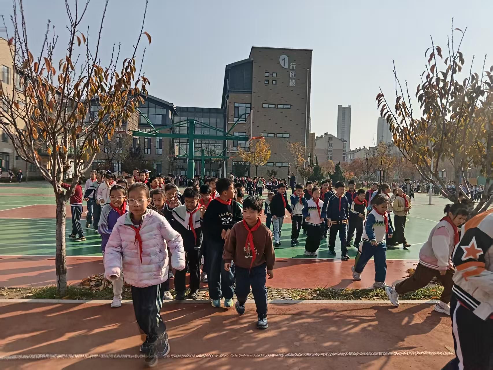 青島市第五十中學(xué)精心準(zhǔn)備,設(shè)計了完整的疏散路線,模擬了現(xiàn)代空襲背景下“預(yù)警、疏散、防護、救援、恢復(fù)”的全過程。從聽到預(yù)先警報后的人員快速引導(dǎo),到空襲警報響起時的緊急掩蔽,再到解除警報后迅即展開的醫(yī)療救護、心理疏導(dǎo)等“消除空襲后果”行動,每一個環(huán)節(jié)都力求貼近真實場景,錘煉了老師和學(xué)生們的應(yīng)急避險能力。