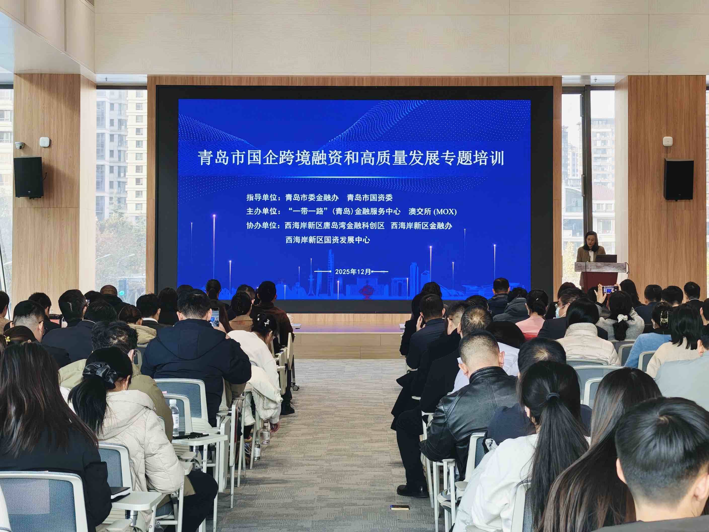 為持續(xù)推進(jìn)青澳兩地跨境合作,充分發(fā)揮“一帶一路”(青島)金融服務(wù)中心作用,拓展青島國有企業(yè)融資渠道,提升“走出去”的能力,12月4日,青島市地方國企跨境融資及高質(zhì)量發(fā)展專題培訓(xùn)成功舉辦。本次培訓(xùn)由青島市委金融辦、市國資委聯(lián)合指導(dǎo),“一帶一路”(青島)金融服務(wù)中心、中華澳門金融資產(chǎn)交易股份有限公司(以下簡稱“MOX澳交所”)主辦,青島西海岸新區(qū)唐島灣金融科創(chuàng)區(qū)、西海岸新區(qū)金融辦、西海岸新區(qū)國資發(fā)展中心協(xié)辦,來自市、區(qū)(市)兩級近70家國企的高級管理人員、財務(wù)管理人員、投融資負(fù)責(zé)人以及財政、金融、國資部門相關(guān)負(fù)責(zé)人員參會,總?cè)藬?shù)近150人。