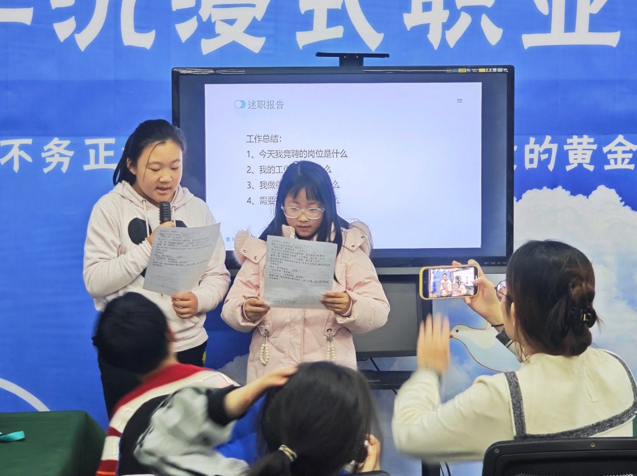 隨后,激烈的部門(mén)經(jīng)理競(jìng)聘環(huán)節(jié)正式上演。小記者們踴躍舉手,紛紛走上臺(tái)前發(fā)表稚嫩卻堅(jiān)定的競(jìng)聘演講。經(jīng)過(guò)激烈角逐,各部門(mén)經(jīng)理脫穎而出,其余小記者則根據(jù)自身興趣和特長(zhǎng),分別加入人力、財(cái)務(wù)、采購(gòu)、生產(chǎn)、銷(xiāo)售五大部門(mén),正式開(kāi)啟職場(chǎng)實(shí)踐之旅。