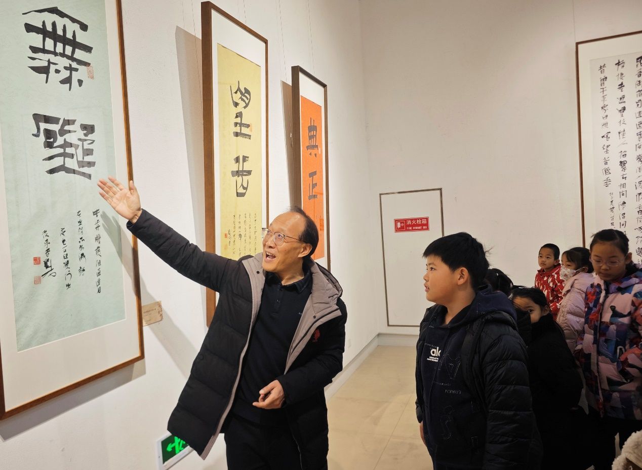 隨后,胡軍帶領(lǐng)小記者欣賞展廳內(nèi)的書法作品,從楷書、行書到隸書、草書,全方位展現(xiàn)劉一聞“澤古甚深、面目獨(dú)具”的藝術(shù)特質(zhì)。