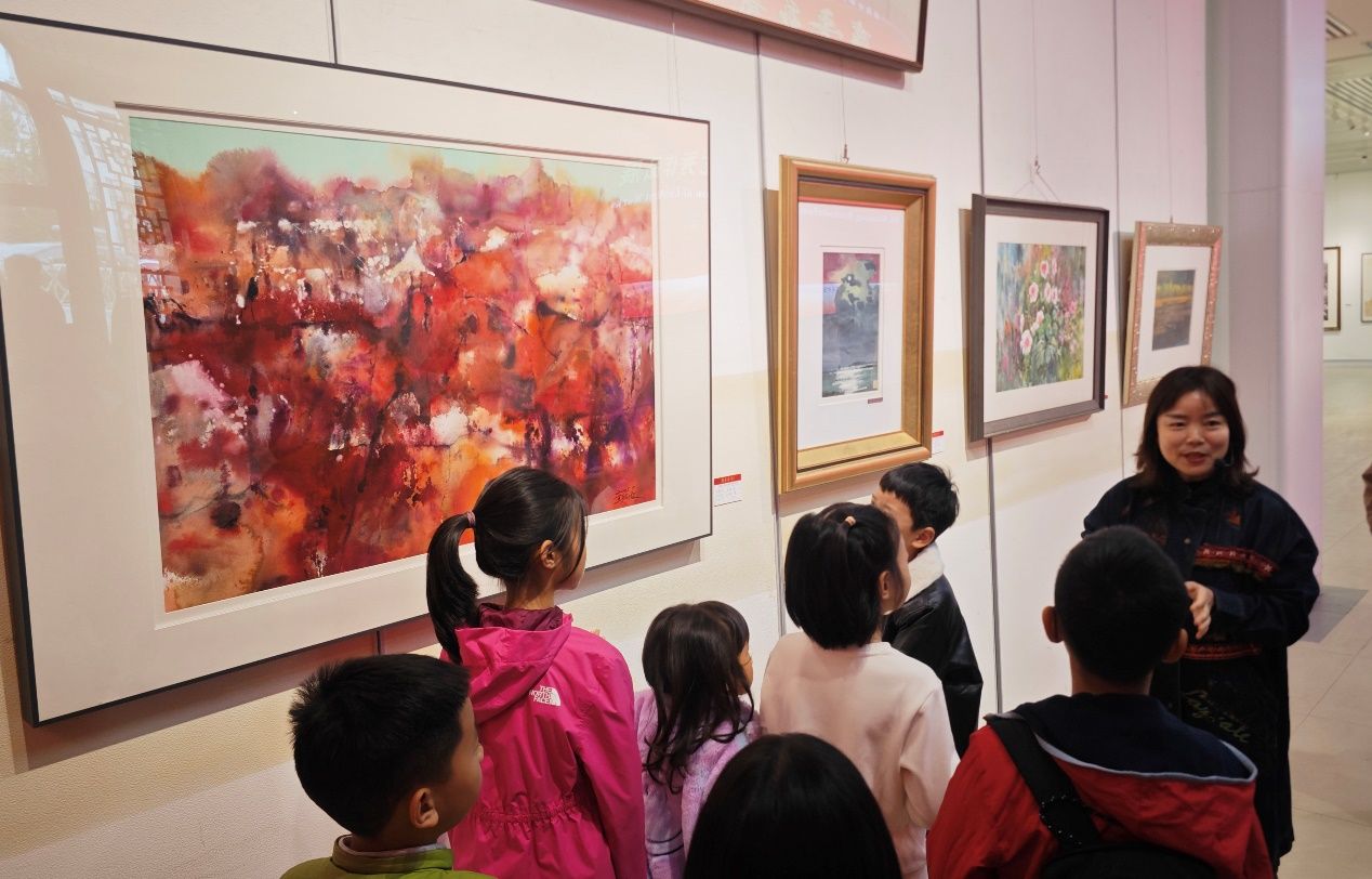 研學(xué)中,小記者沉浸式探訪“齊魯彩韻——第四屆山東水彩畫會(huì)優(yōu)秀作品展”。在藝術(shù)專家的引領(lǐng)下,他們追溯山東水彩四十余年的發(fā)展脈絡(luò),讀懂了水彩藝術(shù)“水色交融”的獨(dú)特魅力,欣賞了涵蓋民俗風(fēng)情、都市風(fēng)貌、自然風(fēng)光等題材的作品,在色彩與光影的交織中感受藝術(shù)與生活的共鳴,在互動(dòng)問答中探尋創(chuàng)作的奧秘。