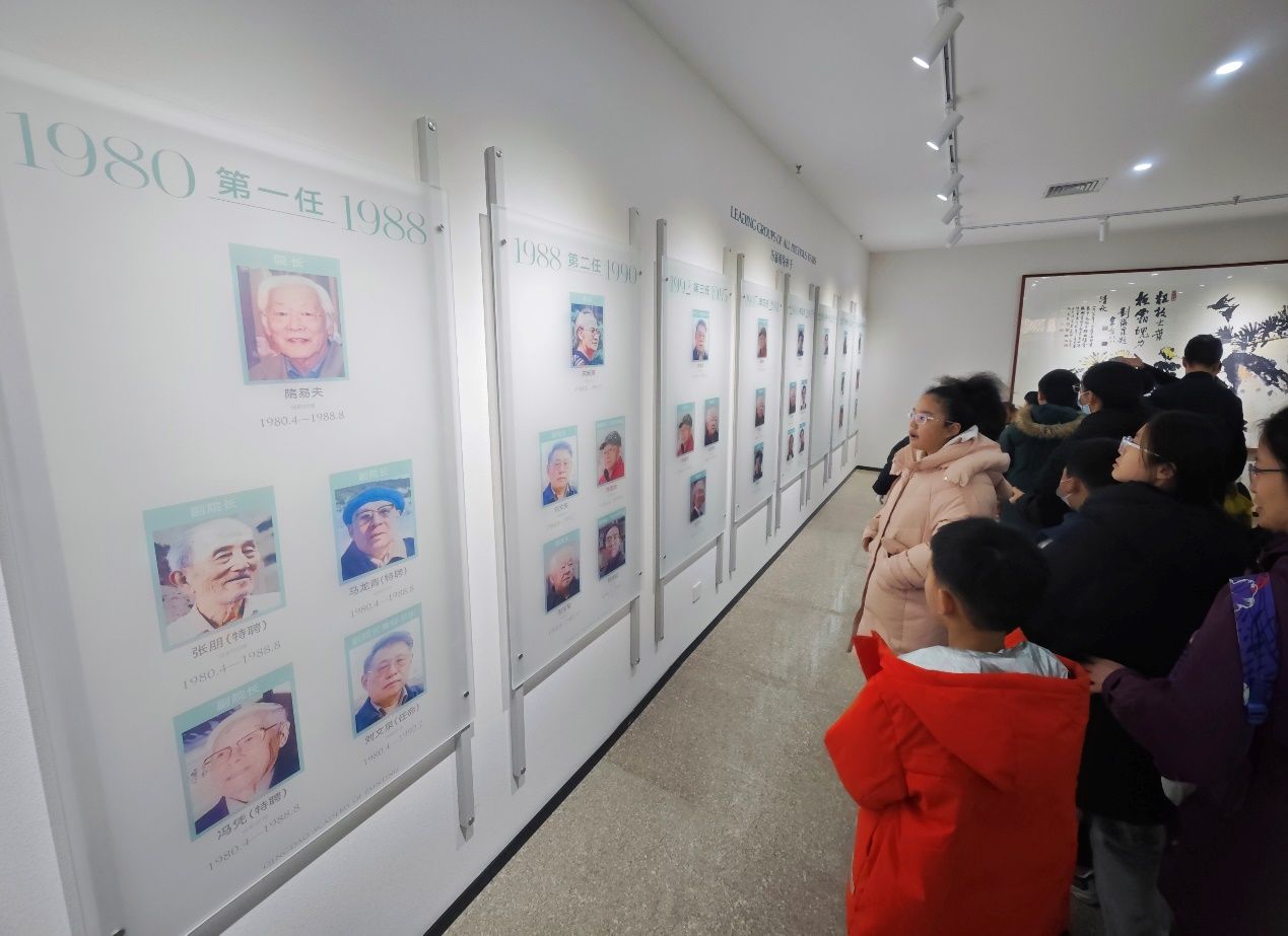 一踏入陳列館,開篇的時(shí)間軸展板便吸引了小記者的目光。1980年3月5日,青島畫院正式成立,是我國改革開放新時(shí)期最早組建的畫院之一。畫院隸屬于青島市文學(xué)藝術(shù)界聯(lián)合會(huì),是國家全額撥款的公益性文化事業(yè)單位,承載著青島最高層次美術(shù)書法創(chuàng)作研究的使命。從1984年選址市南區(qū)湛山村到1988年辦公樓竣工,再到2013年原址改造、2016年回遷,展板上的關(guān)鍵節(jié)點(diǎn)清晰勾勒出畫院的發(fā)展軌跡。如今畫院總建筑面積達(dá)8500平方米,其中美術(shù)館展廳面積2000平方米,成為青島文化藝術(shù)的城市新地標(biāo)。