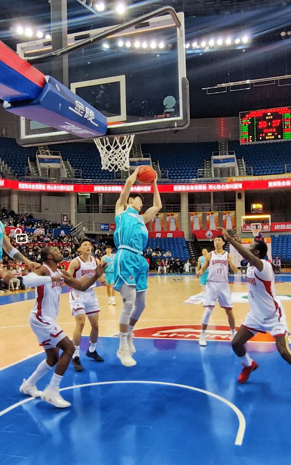 比賽中,面對(duì)山西男籃強(qiáng)勢(shì)的內(nèi)線,青島隊(duì)主教練劉維偉主動(dòng)變陣,派出湯普森與米奇的外援“雙塔”組合,搭配段昂君、王睿澤和王奕博首發(fā)。首節(jié)青島隊(duì)發(fā)揮穩(wěn)定,以24:18領(lǐng)先。然而第二節(jié)在對(duì)手嚴(yán)密防守下,全隊(duì)進(jìn)攻效率下降,半場(chǎng)結(jié)束時(shí)以39:46落后。