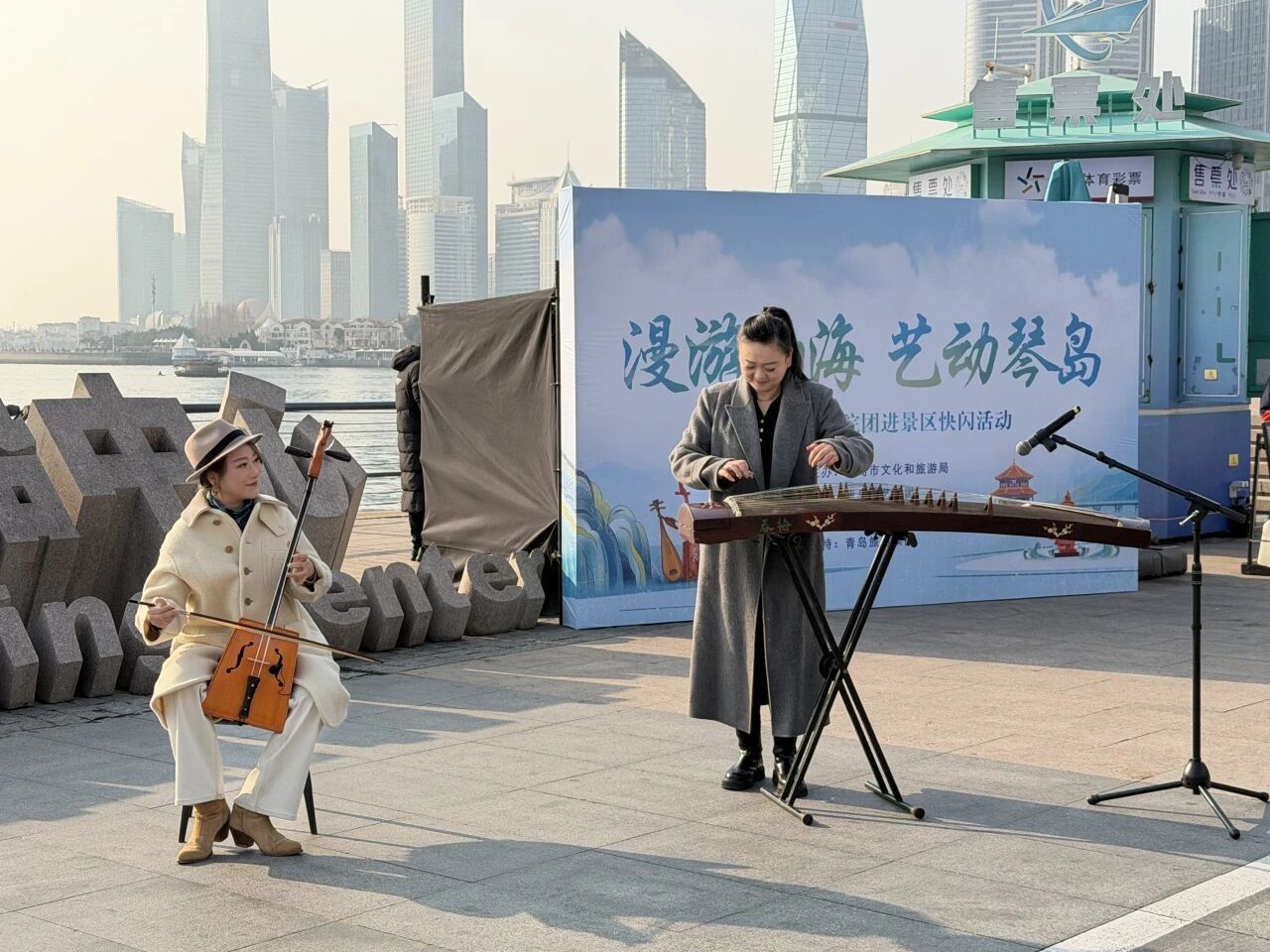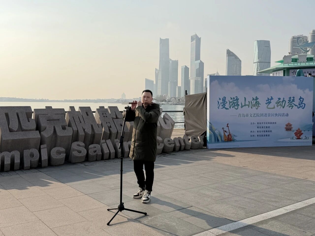 無需門票、沒有舞臺(tái)圍擋,奧帆中心的整片海灣便是天然展演空間,城市璀璨天際線與粼粼波光相映成景,成為民樂演出的絕佳幕布?;顒?dòng)現(xiàn)場(chǎng),二胡、竹笛、嗩吶、馬頭琴、古箏等民族樂器輪番登場(chǎng),青島市歌舞劇院演奏家聯(lián)袂獻(xiàn)藝,用醇厚悠揚(yáng)的中國(guó)樂音,叩響島城歲末的海天樂章。