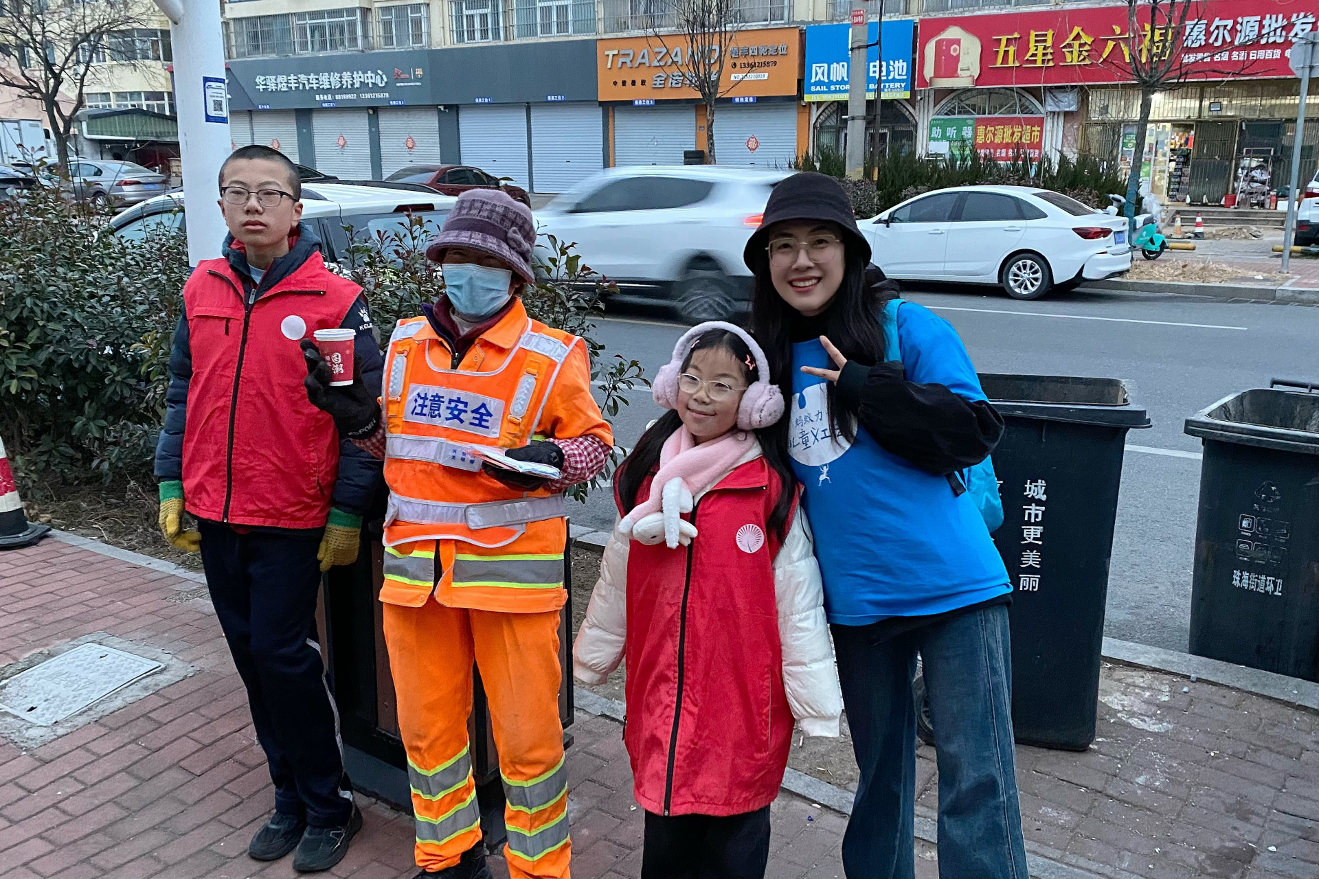 小志愿者們親自熬制的姜茶熱氣氤氳,在社區(qū)志愿者和家長的陪同下趕往預(yù)定的活動地點,期待著親手將這份溫暖送到環(huán)衛(wèi)工人、醫(yī)院一線值守人員、菜市場早市從業(yè)者、加油站戶外工作人員等長年在室外工作的城市建設(shè)者手中,讓他們驅(qū)散寒冷與疲憊,感受社區(qū)的溫暖和愛意。
