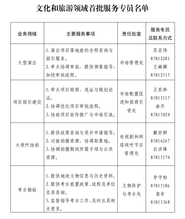 此次建立的企業(yè)“服務專員”工作機制,重點聚焦文旅產(chǎn)業(yè)發(fā)展中的關(guān)鍵環(huán)節(jié)與痛點堵點,首批打造了“項目招引建設、大型營業(yè)性演出、大視聽協(xié)拍、考古勘驗”4支服務專員隊伍。