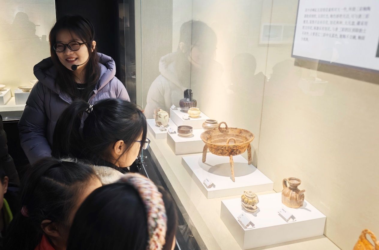元代的高足杯俗稱“馬上杯”,承載著馬背上民族的獨(dú)特風(fēng)情;清代的杯盞更是集歷代名窯之大成,琺瑯彩、粉彩、玲瓏瓷等品種繁多,將中國制瓷工藝推向歷史頂峰。講解員老師結(jié)合展品背后的歷史故事娓娓道來,小記者聽得津津有味,不時舉手提問,沉浸式感受中華陶瓷文化的博大精深。