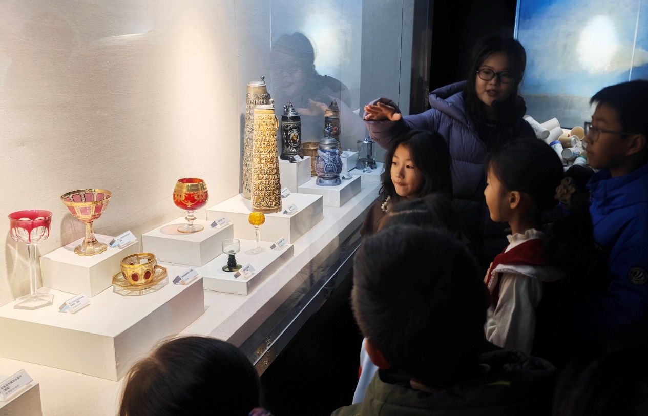 歐美展區(qū)則呈現(xiàn)出另一番風(fēng)情,銀器的璀璨、水晶器的剔透、陶瓷器的華麗,各類材質(zhì)與風(fēng)格的杯盞器皿,展現(xiàn)了歐美歷史上飲用泉水、牛奶、咖啡、紅酒、啤酒等不同飲品時的器具特色,讓小記者直觀感受到異域文化的獨(dú)特魅力。