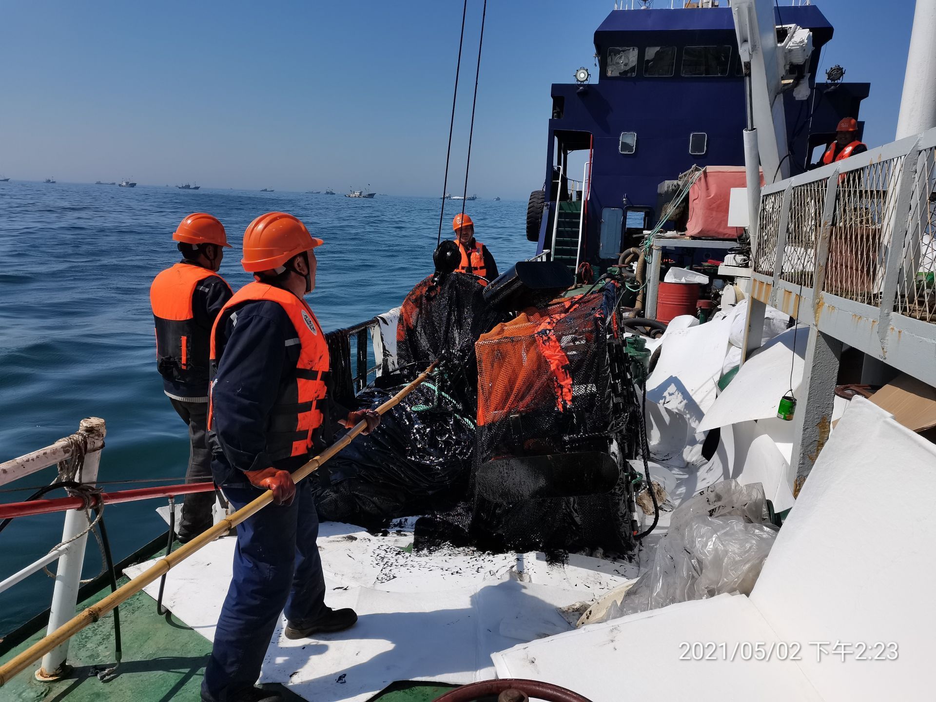航順人不畏艱辛,積極投入到“427”船舶碰撞溢油事故處置現(xiàn)場