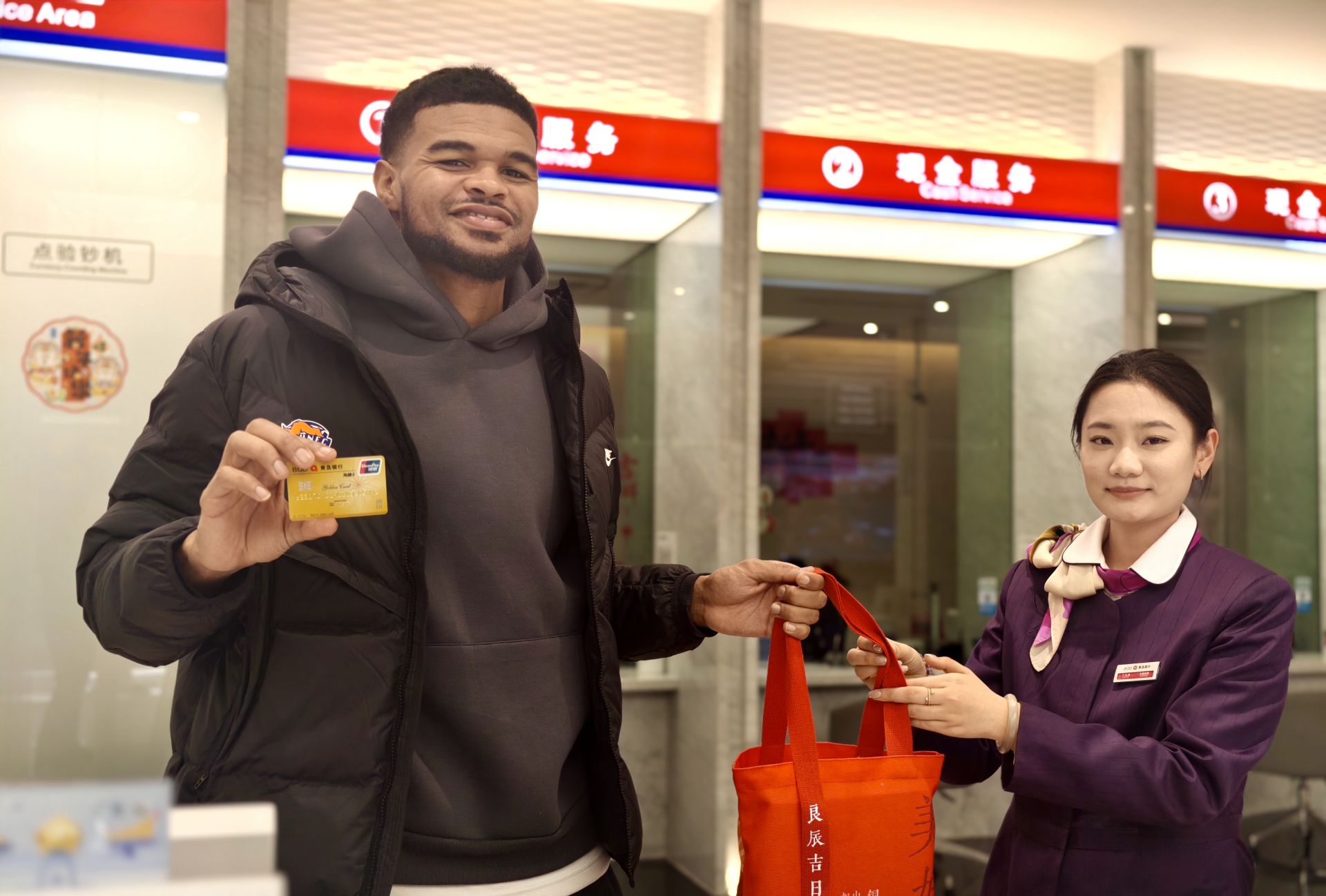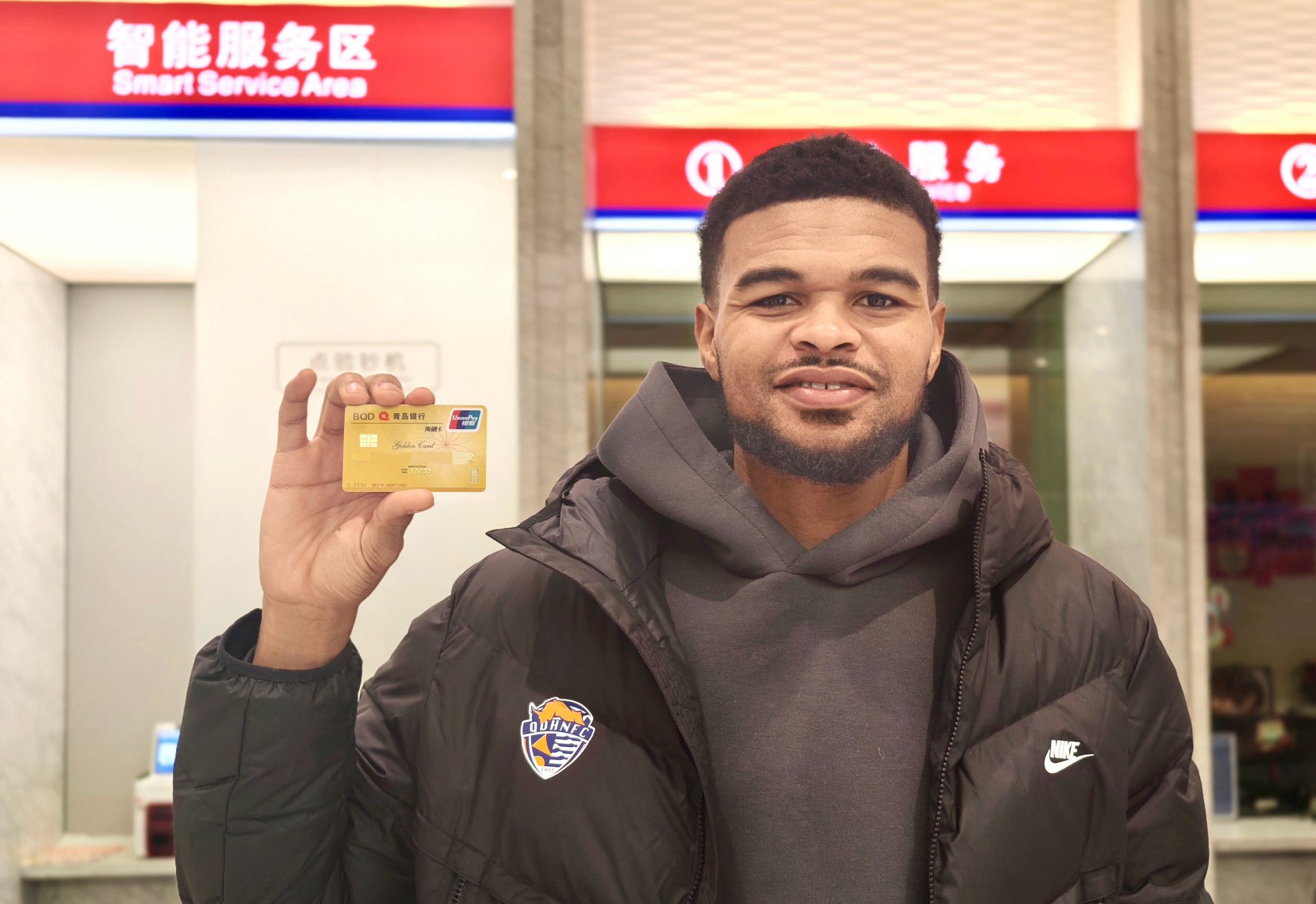 1月23日下午,青島銀行營(yíng)業(yè)部大廳迎來(lái)了一位特殊的客人——青島海牛新外援恩約馬。剛于1月22日晚抵達(dá)青島的他,為方便日后生活與消費(fèi),專程來(lái)到青島銀行網(wǎng)點(diǎn)辦理業(yè)務(wù)、參觀打卡,在這里收獲了在中國(guó)的金融服務(wù)初體驗(yàn)。