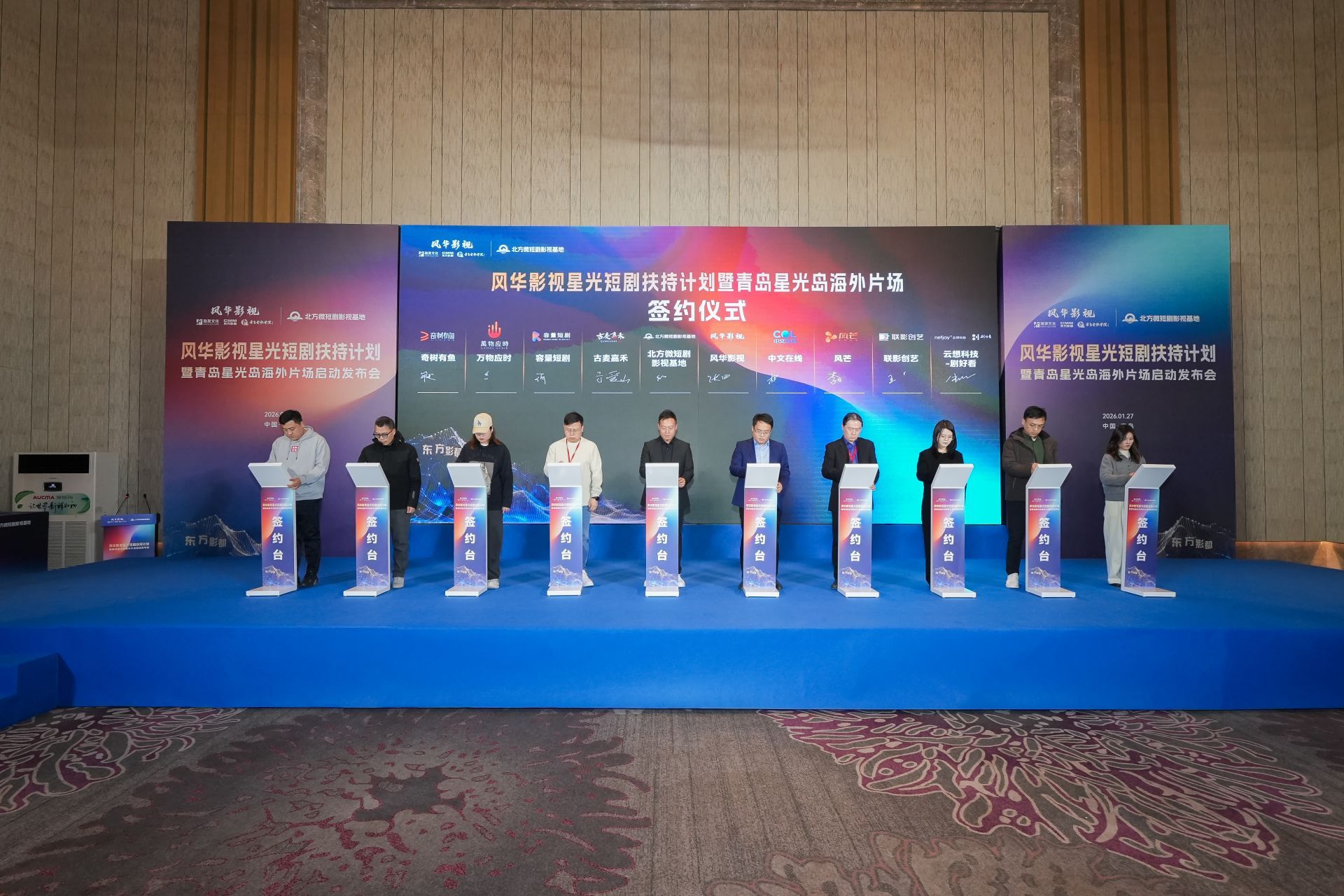 發(fā)布會上,風(fēng)華影視、北方微短劇影視基地與中文在線、風(fēng)芒、容量短劇、融創(chuàng)文化、古麥嘉禾、聯(lián)影創(chuàng)藝、奇樹有魚、萬物應(yīng)時、無糖文化、云想科技劇好看、同人星光、星川互娛等機構(gòu)進行了合作簽約,共同助推微短劇新質(zhì)傳播力、影響力,以精品內(nèi)容展現(xiàn)當(dāng)下中國的蓬勃生機與充沛活力。