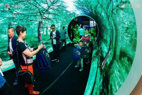 通往主會(huì)場(chǎng)的“隧道”為前來(lái)參加盛會(huì)的嘉賓,提前營(yíng)造出一種極致的3D視覺(jué)體驗(yàn),也為接下來(lái)的視聽(tīng)盛宴拉開(kāi)了序幕。城市在每個(gè)人的眼前重構(gòu),繁華的道路變成了一條條璀璨的光線。當(dāng)人們繼續(xù)前進(jìn),看到高樓擋不住的綠意,感嘆這份生態(tài)體驗(yàn)的意境,仿佛置身城市之中的桃花源。